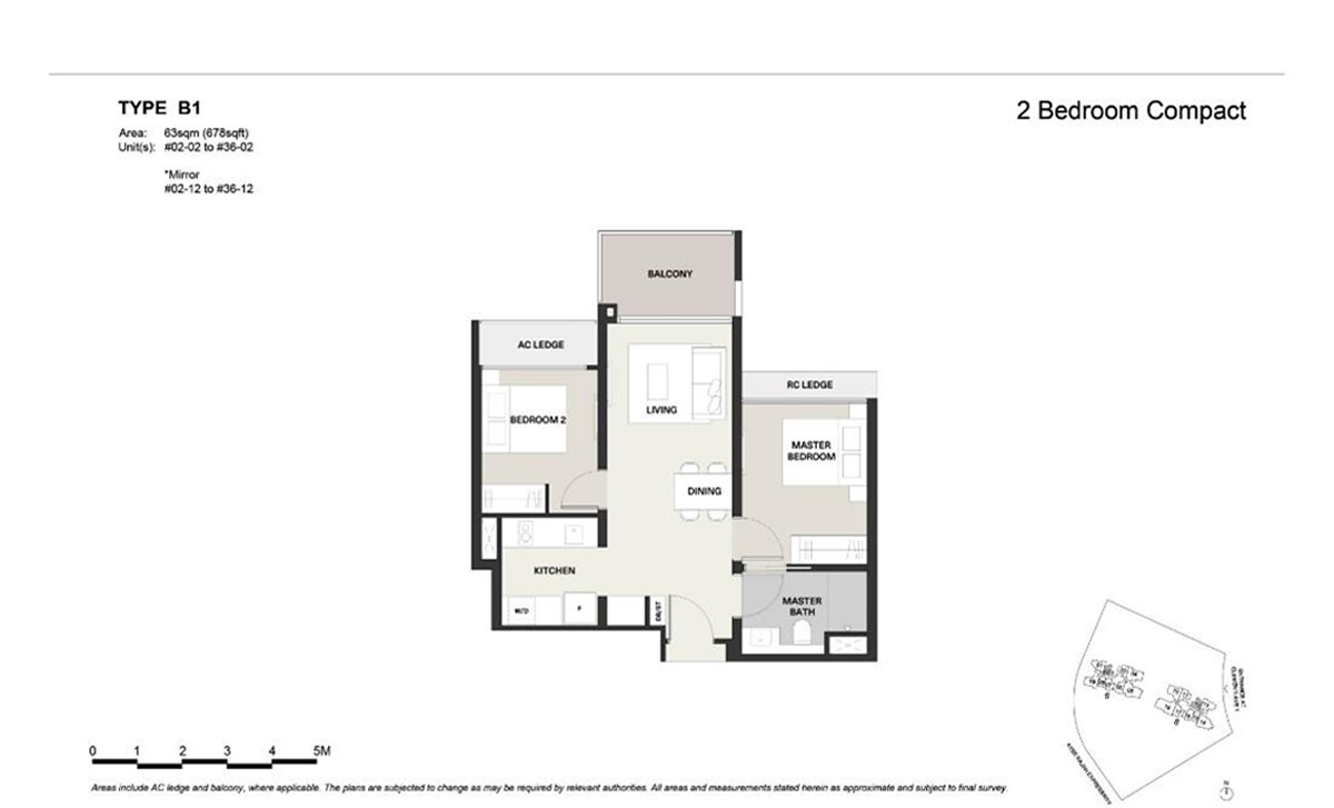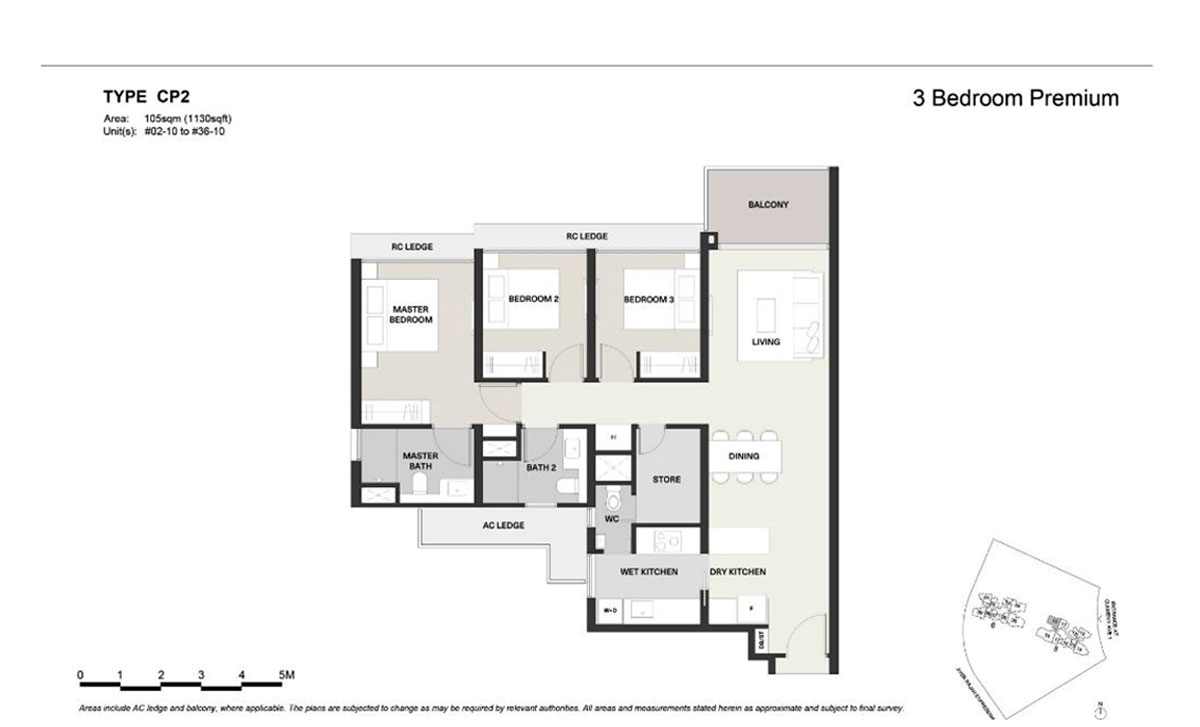 These premium units are 1,130 sqft in size and they come with a dry kitchen area and also a flexible room which can be used as a store or a study room or both. The master bedroom is large enough to place a bedside table on both sides of a king-sized bed with ample walking space.