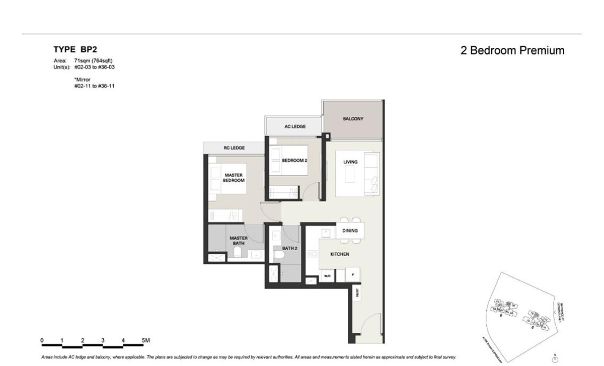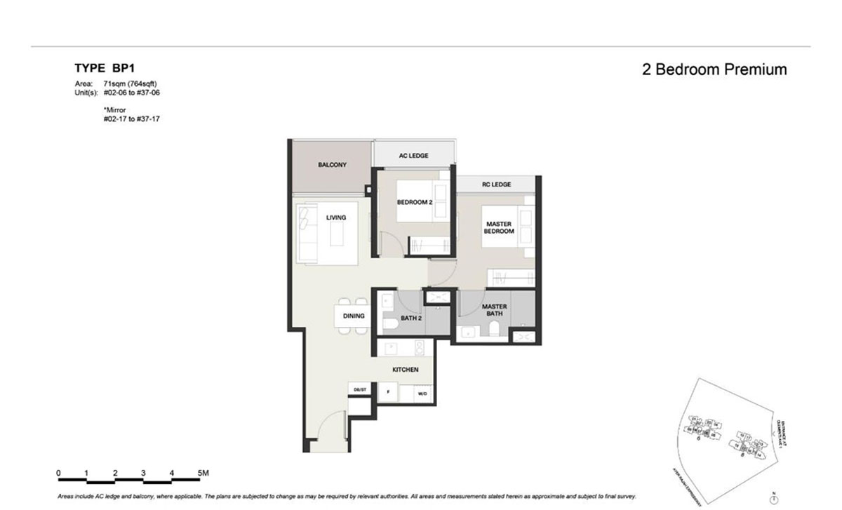 There are 3 different layouts for the 2-bedroom premium, with 2 layouts having the typical bedroom clustered together and another layout in a dumbbell design.