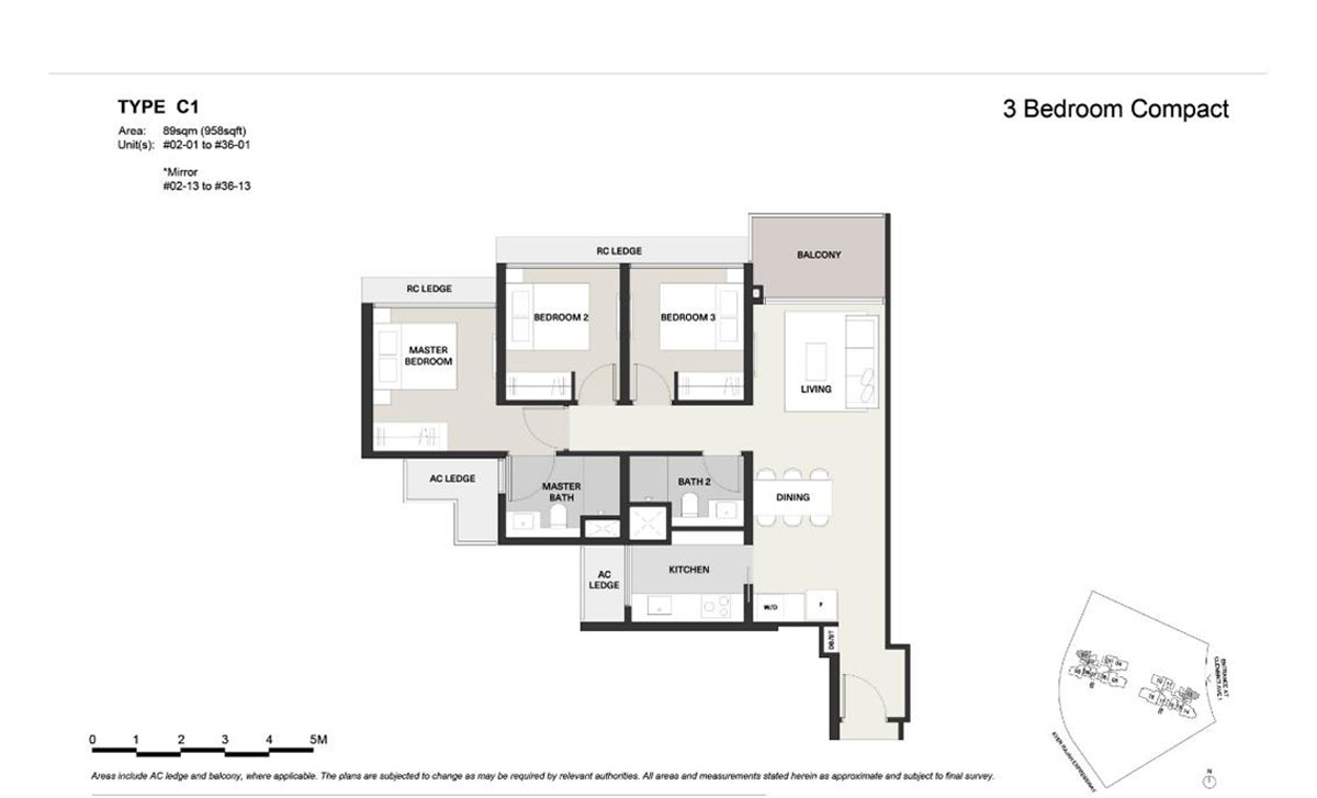 These 3-bedroom compact units are sized below 1,000 sqft which has an entrance foyer to provide privacy to the occupants. They are generously sized with a large living/dining area as well as the bedrooms. The bedroom is able to place a queen-sized bed in the common room and a king-sized bed in the master bedroom.