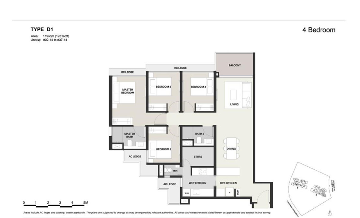 The largest and glamourous unit in Clavon is the 5-bedroom which is sized at 1,690 sqft.